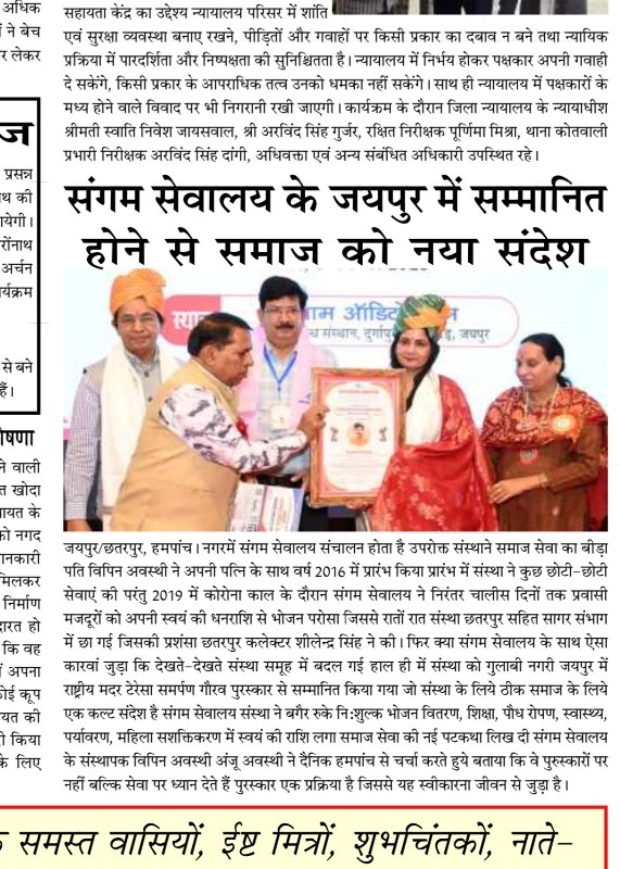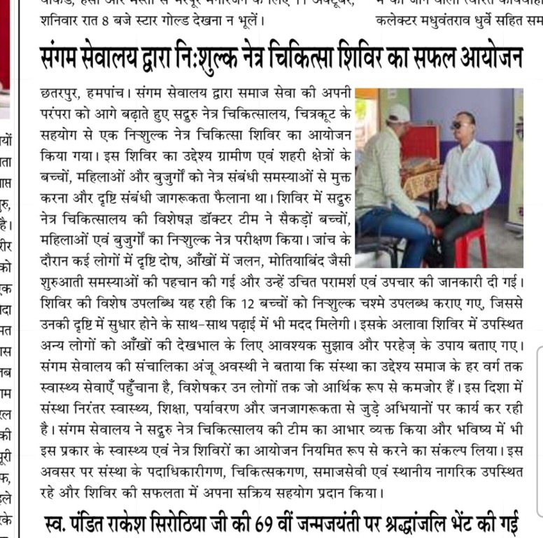 “Sangam Sewalaya stands for food security, child education, healthcare, and sustainable community development.”